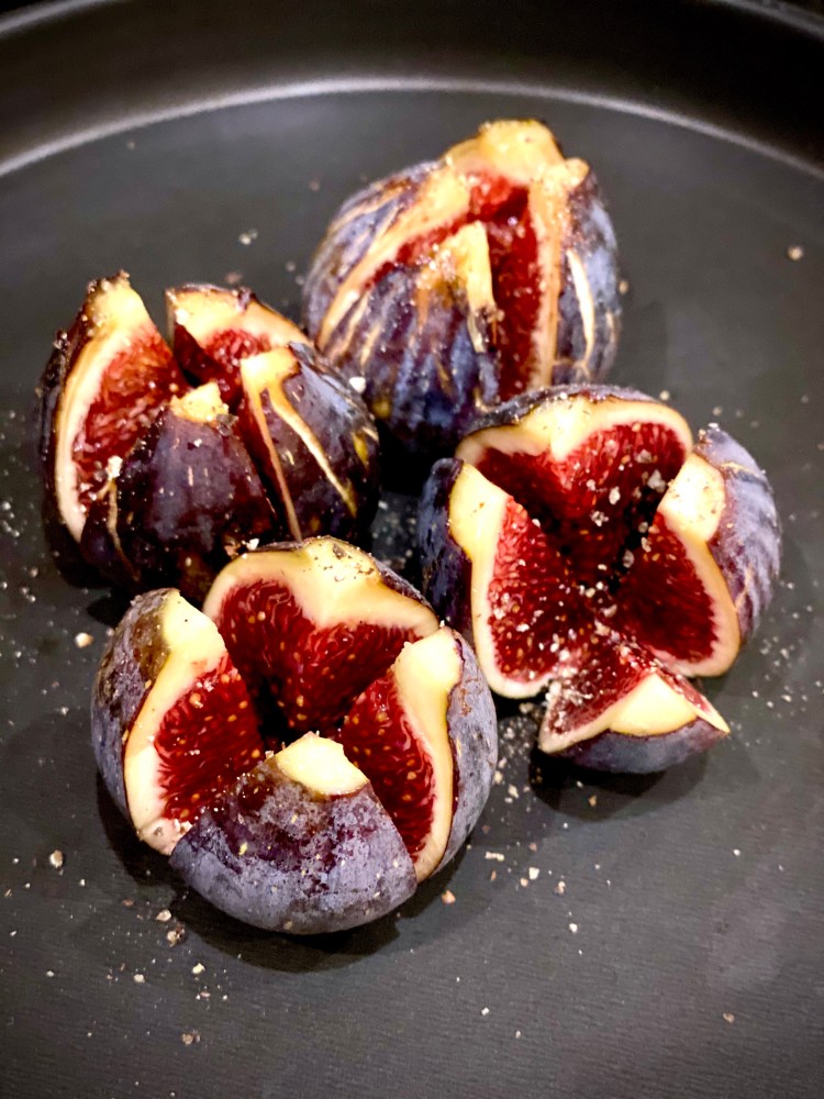 Mettre un léger tour de moulin à poivre dans les entailles juste avant d’enfourner les figues.