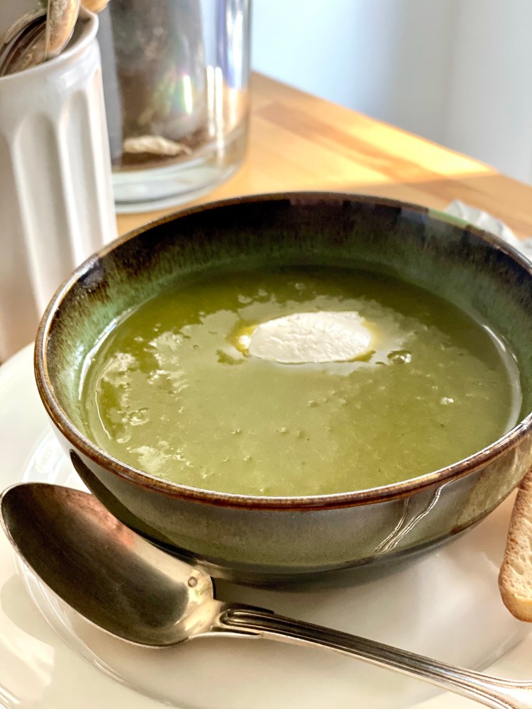Parce que je n’aime vraiment pas jeter ce qui peut encore être consommé, j’ai gardé le vert du poireau pour le faire en soupe. On peut parler d’une soupe détox, mais surtout une soupe anti-gaspi.